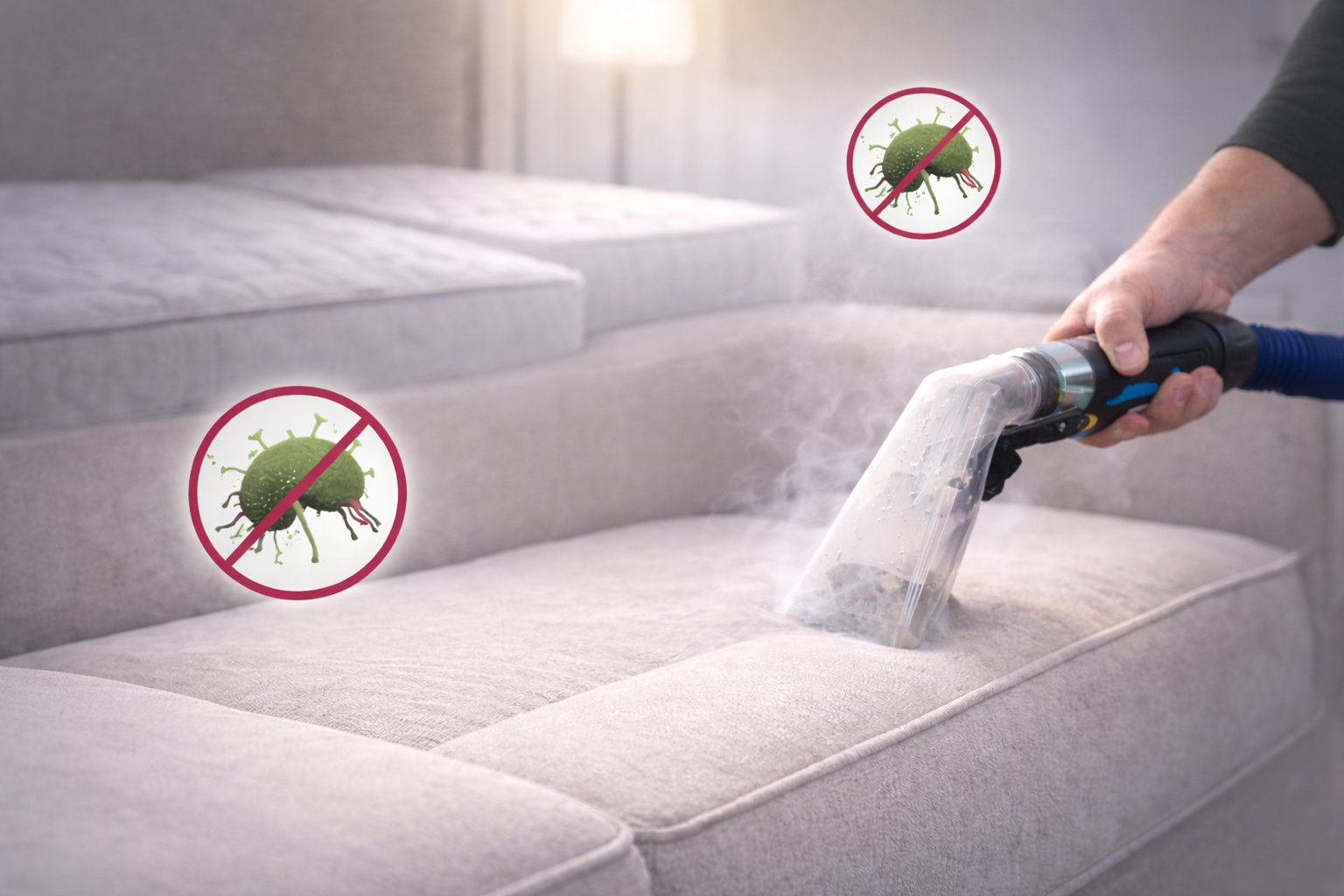 Limpeza profunda que protege a sua saúde e prolonga a vida dos seus estofos, colchões, tapetes e alcatifas.